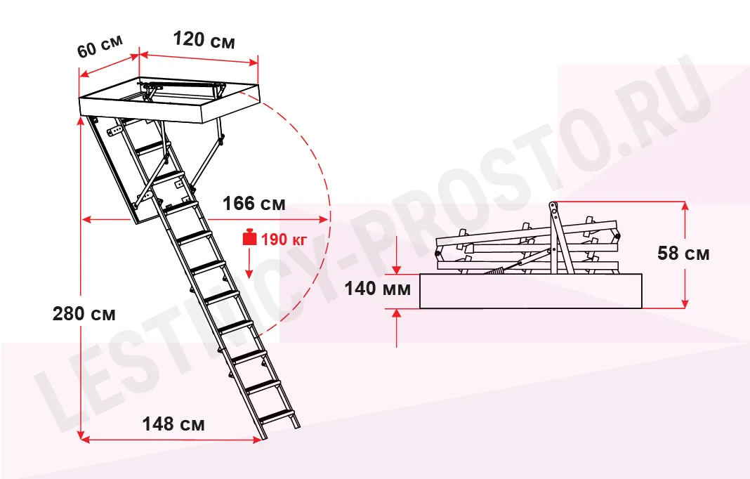 Чердачная лестница с люком OMAN METAL T3 60х120 см, h-280 см
