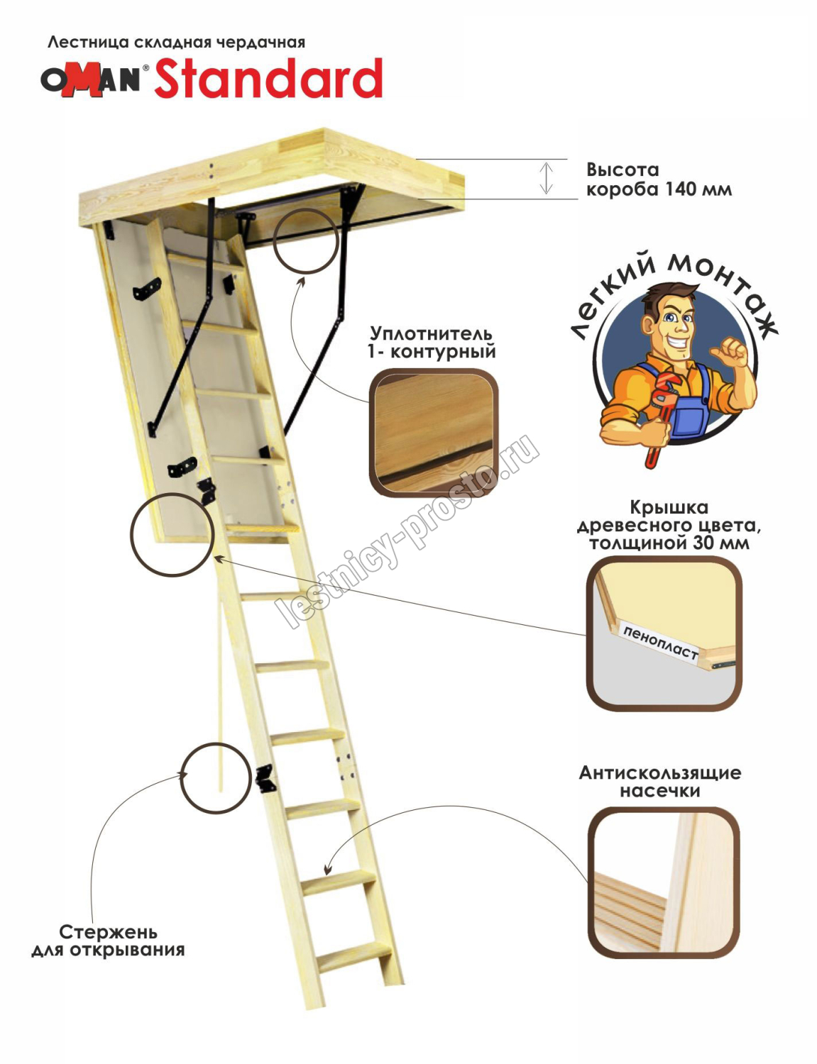 | Чердачная лестница OMAN STANDARD 60×120 см, h-280 см |