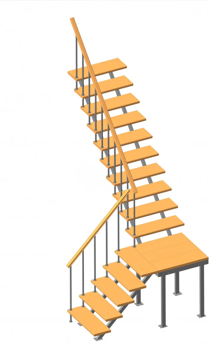 Компактная лестница, легко поддается доработке по высоте на объекте. Удобный поручень по второму маршу обеспечивает безопасность и законченный эстетический вид. Монтаж осуществляется силами двух человек на объекте по указаниям, приведенным в паспорте на лестницу.