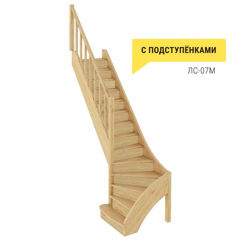 Деревянная межэтажная лестница ЛЕС-09 3310 проем 2800-900, Сосна