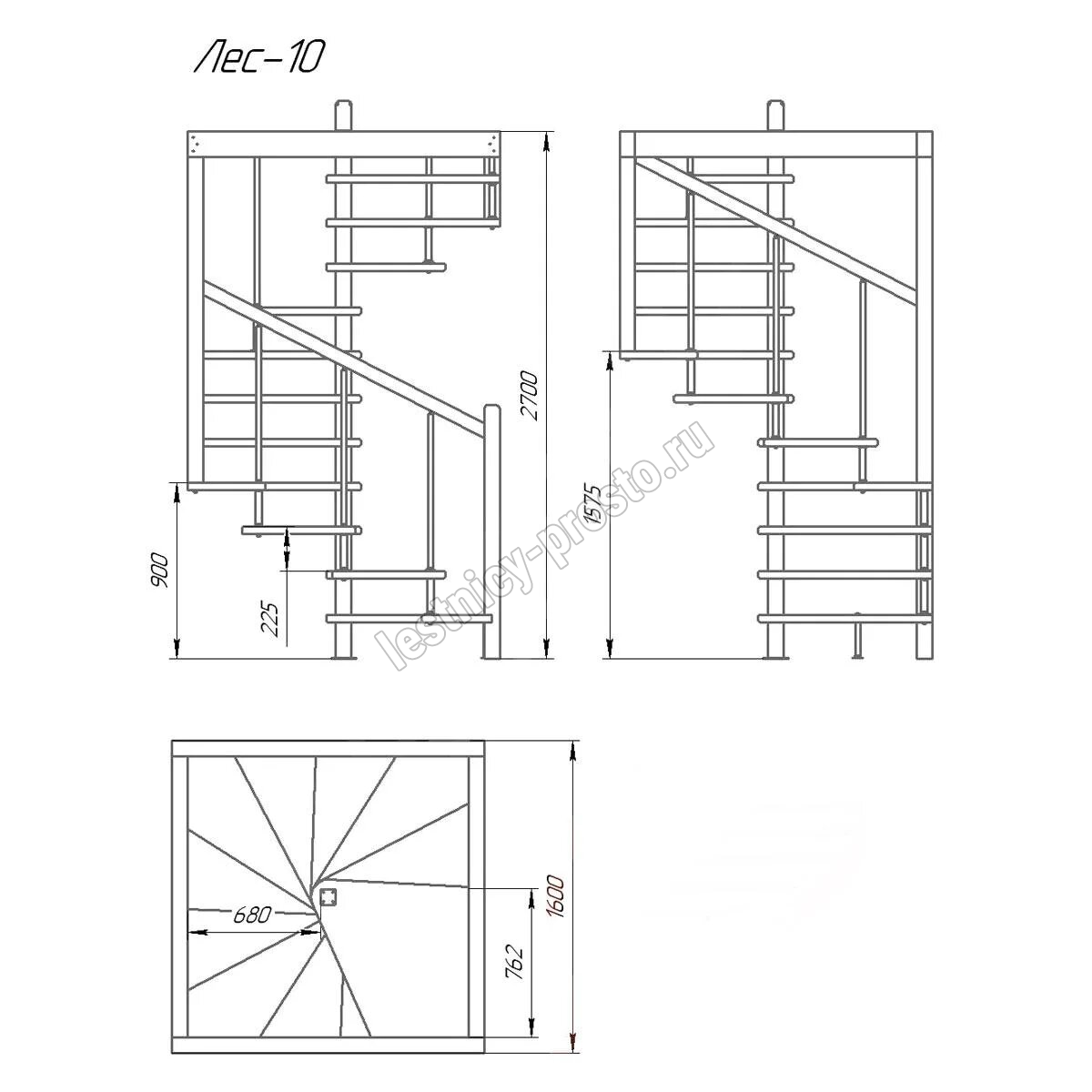 Деревянная межэтажная лестница ЛЕС-10, Сосна