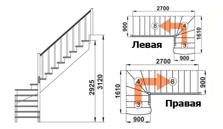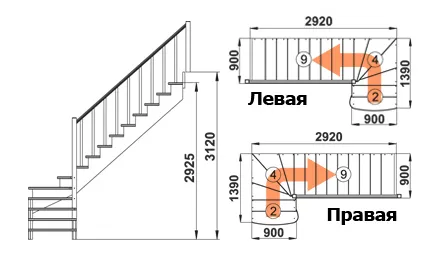 Высота лестницы 2925 - 3120