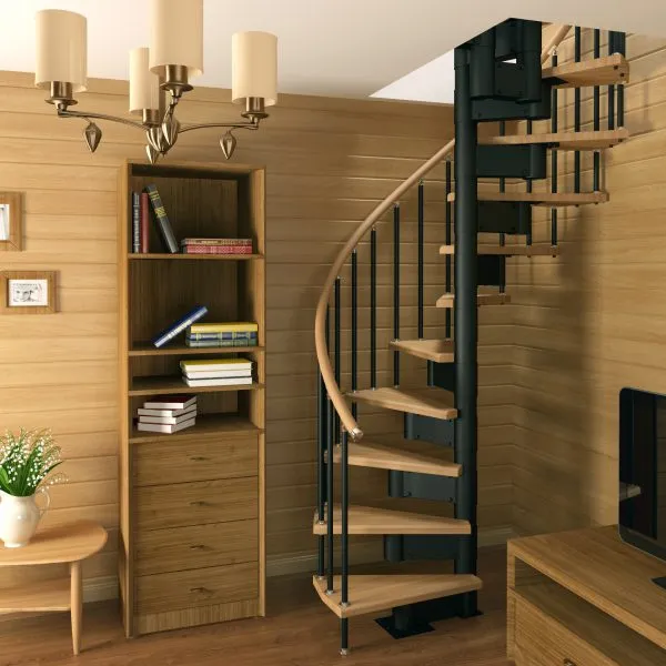 Ступени и поручень лестницы изготовлены из бука, остальные элементы из сосны.