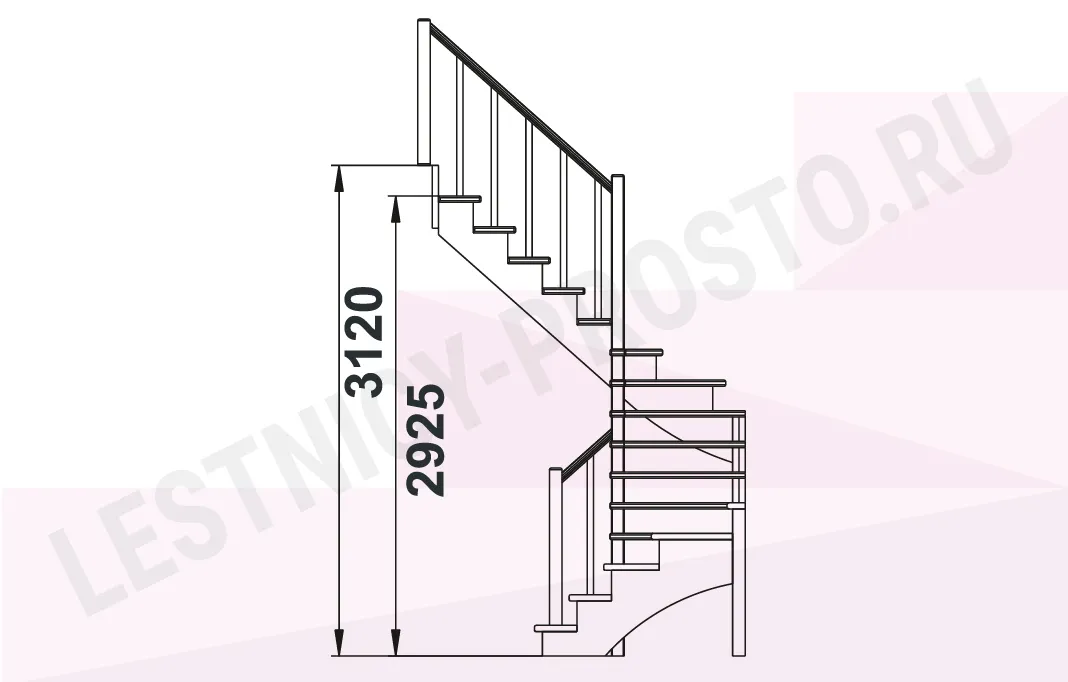 Ступени и поручень изготовлены из дуба, остальные элементы из сосны. Возможно изготовление данной модели полностью из дуба.
