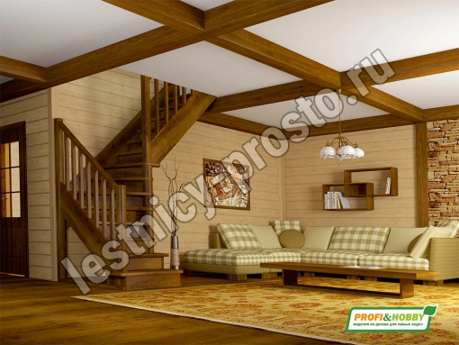 Ступени и поручень лестницы изготовлены из дуба, остальные элементы из сосны.