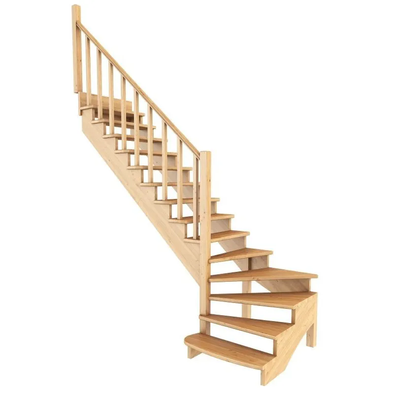 Базовый комплект включает в себя деревянные элементы лестницы и ограждения без какого-либо покрытия.