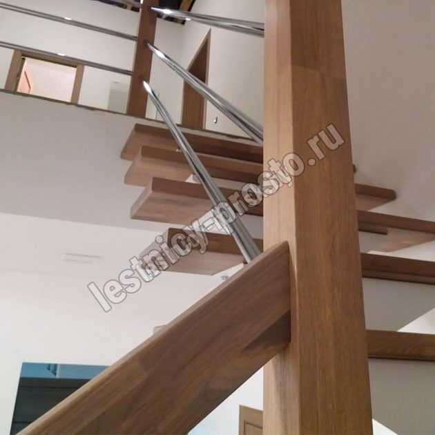 В комплекте: столбы и профильный поручень из бука без покрытия, комплект из 3 стальных ригелей (окрашены в цвет каркаса или хром по желанию) диаметром 12 мм. Ограждение начинается с пятой ступени.<br>