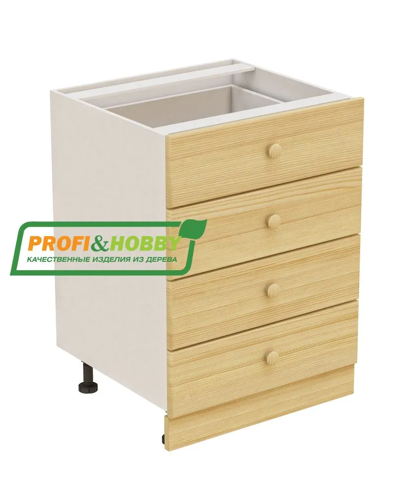 Тумба 4 ящика 600х530х720 + фасад сосна бесцветный акриловый лак