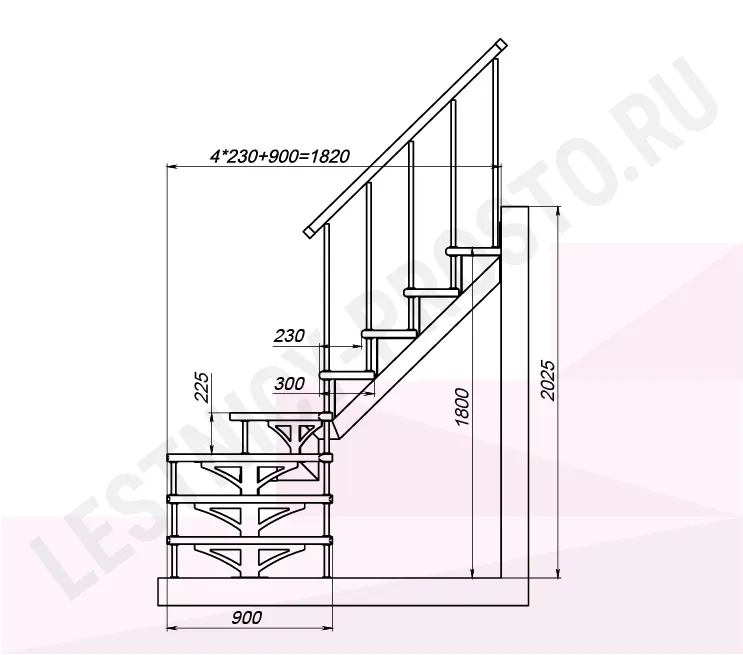 Лестница PROSTO MONO Г-образная h202.5 см, ступени лиственница