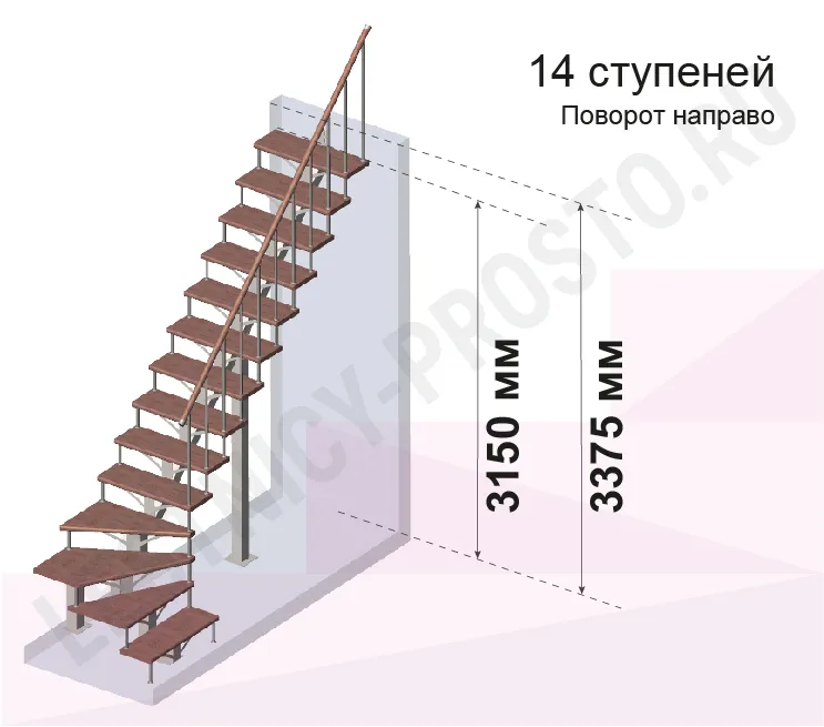 Высота лестницы 3150 - 3375 мм