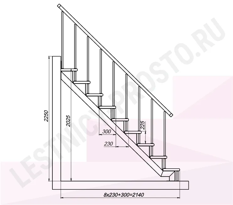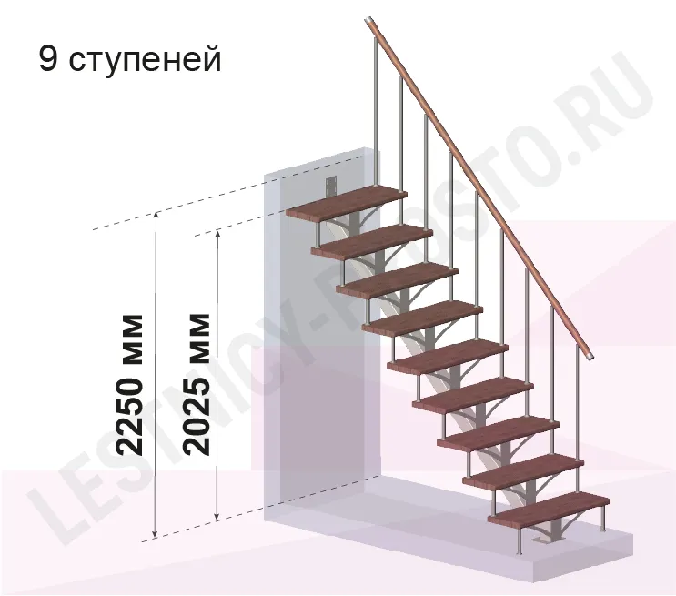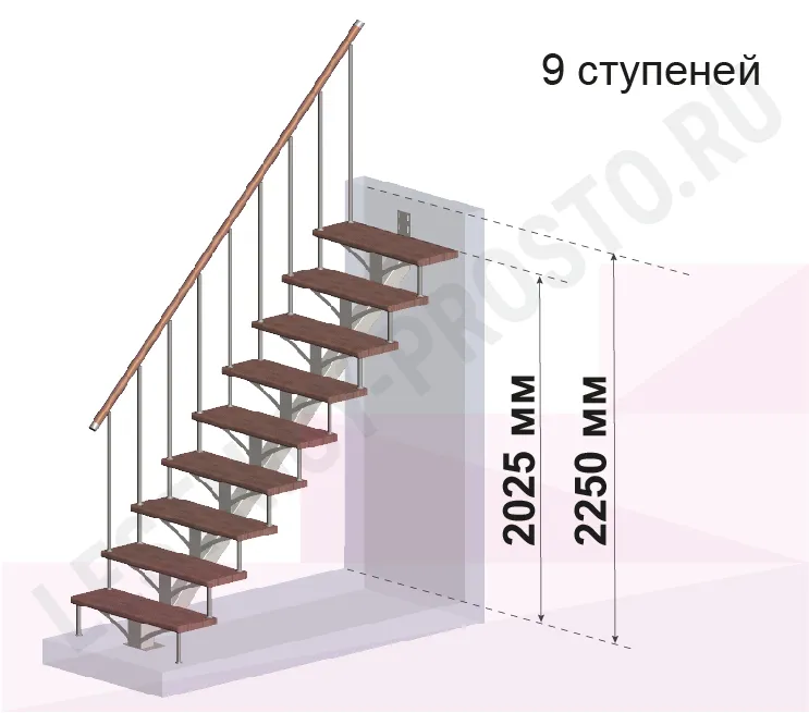 Лестница PROSTO MONO прямая, h225 см, ступени хвоя