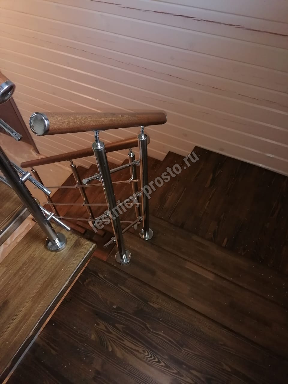 Конструкция представляет собой стальной монокосоур, на который крепятся ступени из выбранной породы дерева.