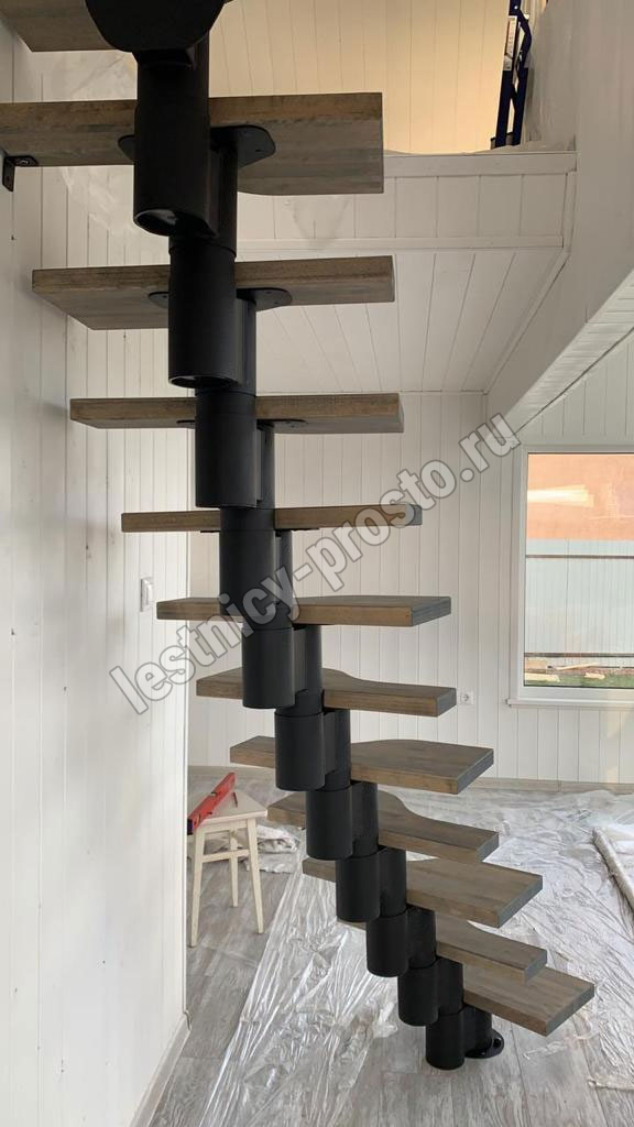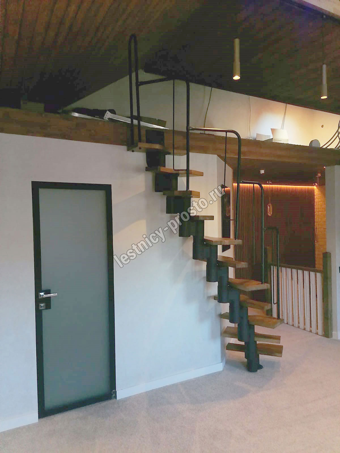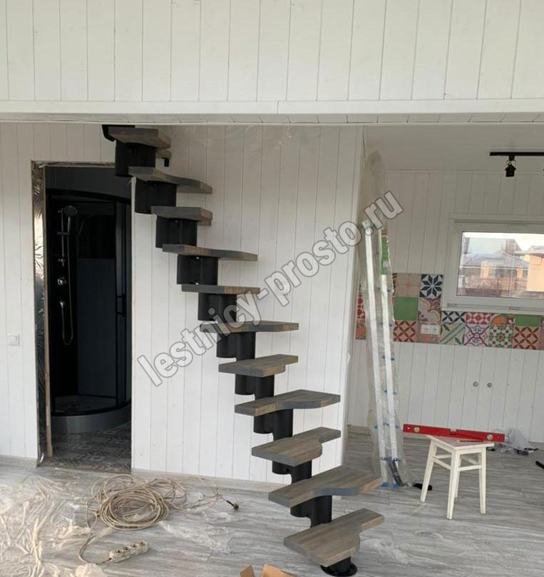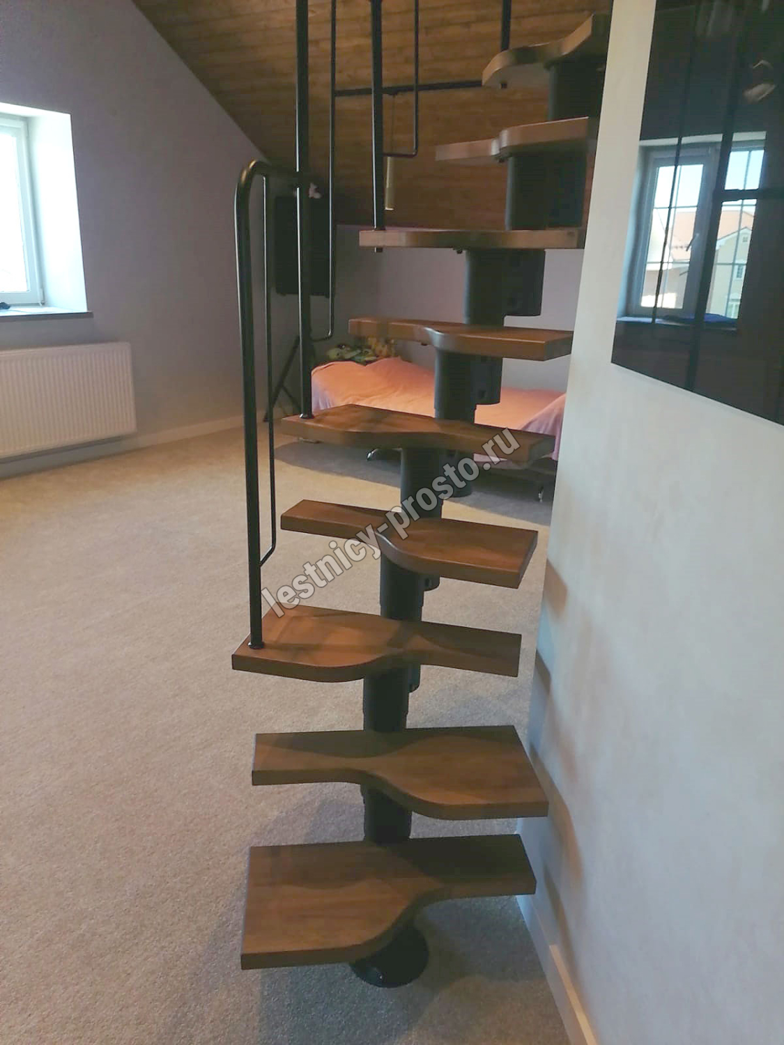 Лестница Prosto Urban Black гусиный шаг 700 мм, h216-312 см (12 ступеней), бук