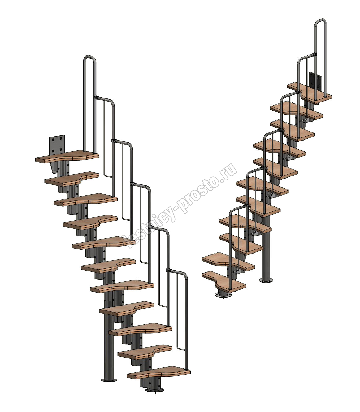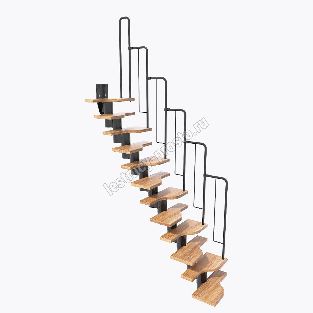 Лестница Prosto Urban Black гусиный шаг 600 мм, h198-288 см (11 ступеней), ясень