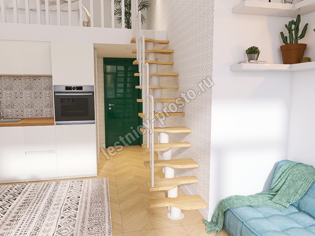 Лестница Prosto Urban White гусиный шаг 700 мм, h180-264 см (10 ступеней), бук
