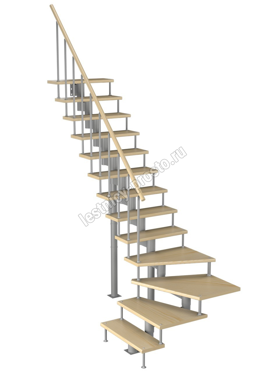 Модульная лестница Фаворит 180 2340-2470, Серый, Бук, Нержавеющая сталь