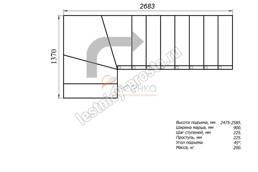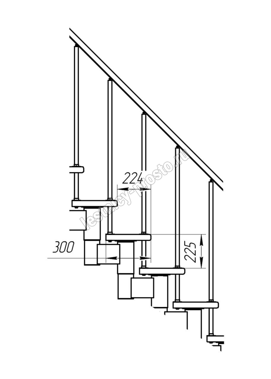 Модульная лестница Фаворит 225 2475-2585, Белый, Сосна, Нержавеющая сталь