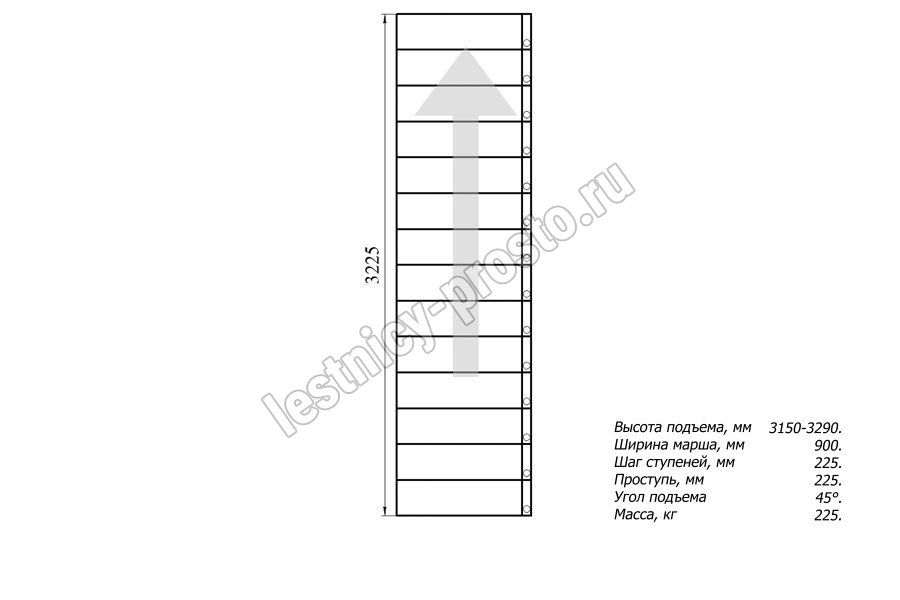 Модульная лестница Стандарт 3150-3290, Черный, Лиственница, Нержавеющая сталь