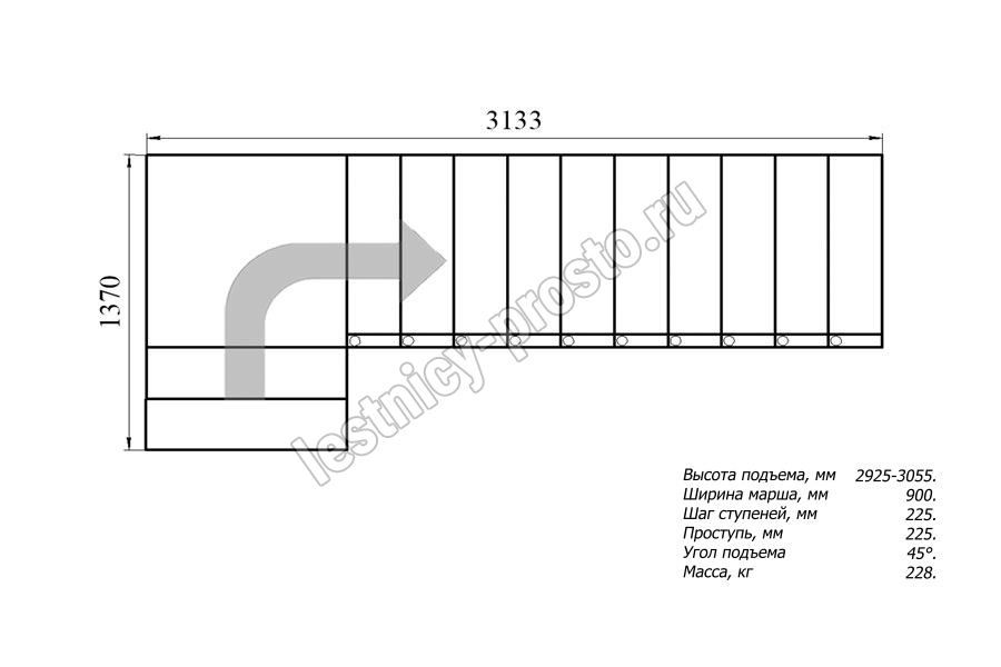 Модульная лестница Статус 225 2925-3055, Черный, Сосна, Крашеная
