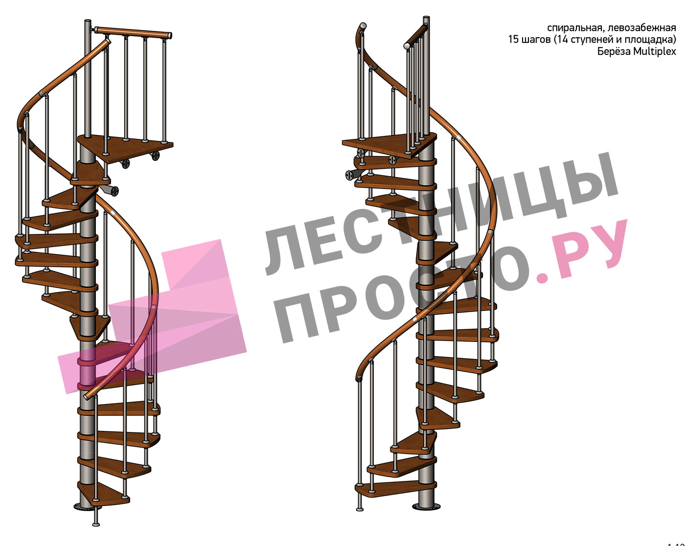 Винтовая лестница Prosto Spiral Black D120см, h318.2-362.3 см