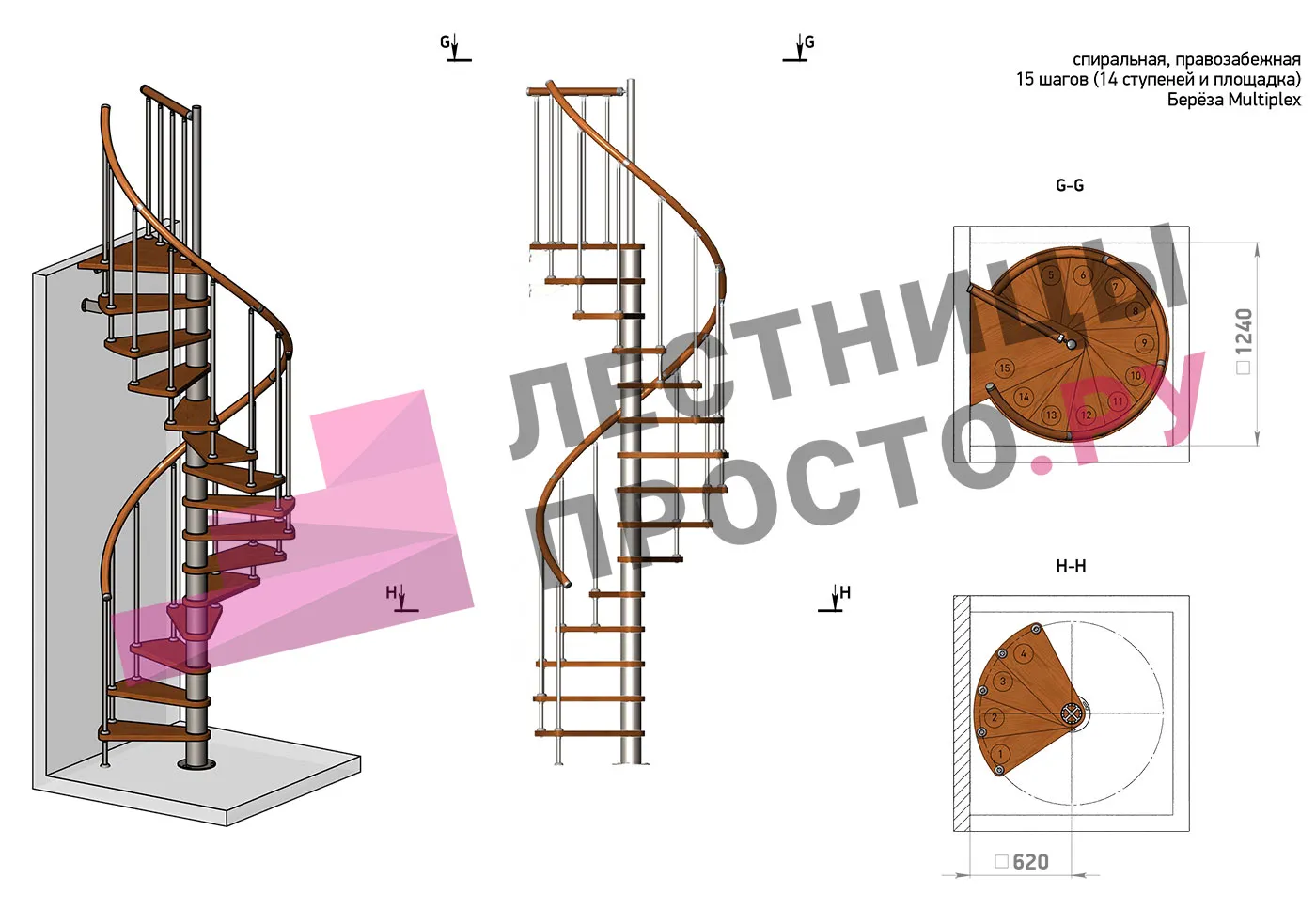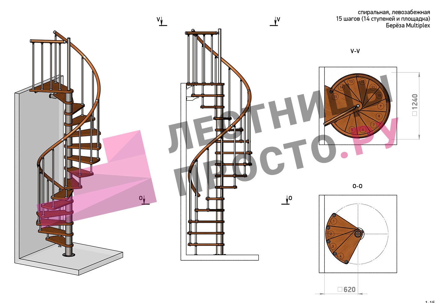 Решение об ориентации поворота лестницы принимается при сборке (комплект собирается и в правозабежную, и в левозабежную лестницу)