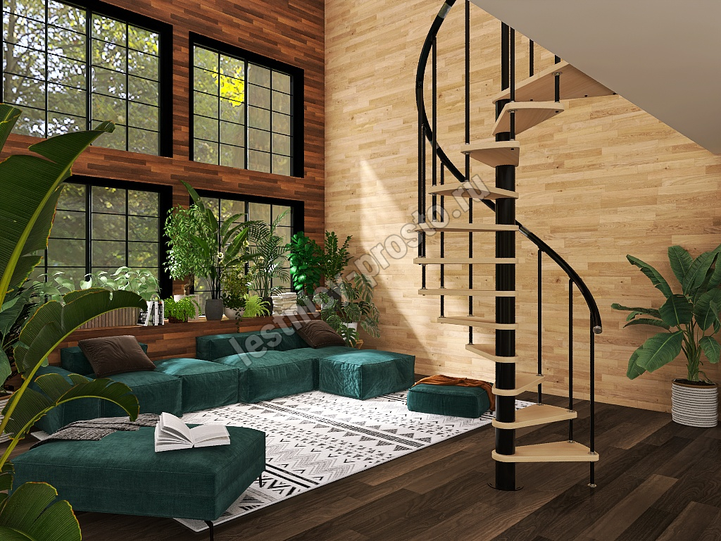 Винтовая лестница Prosto Spiral Black D160см, h296.9-338.1 см