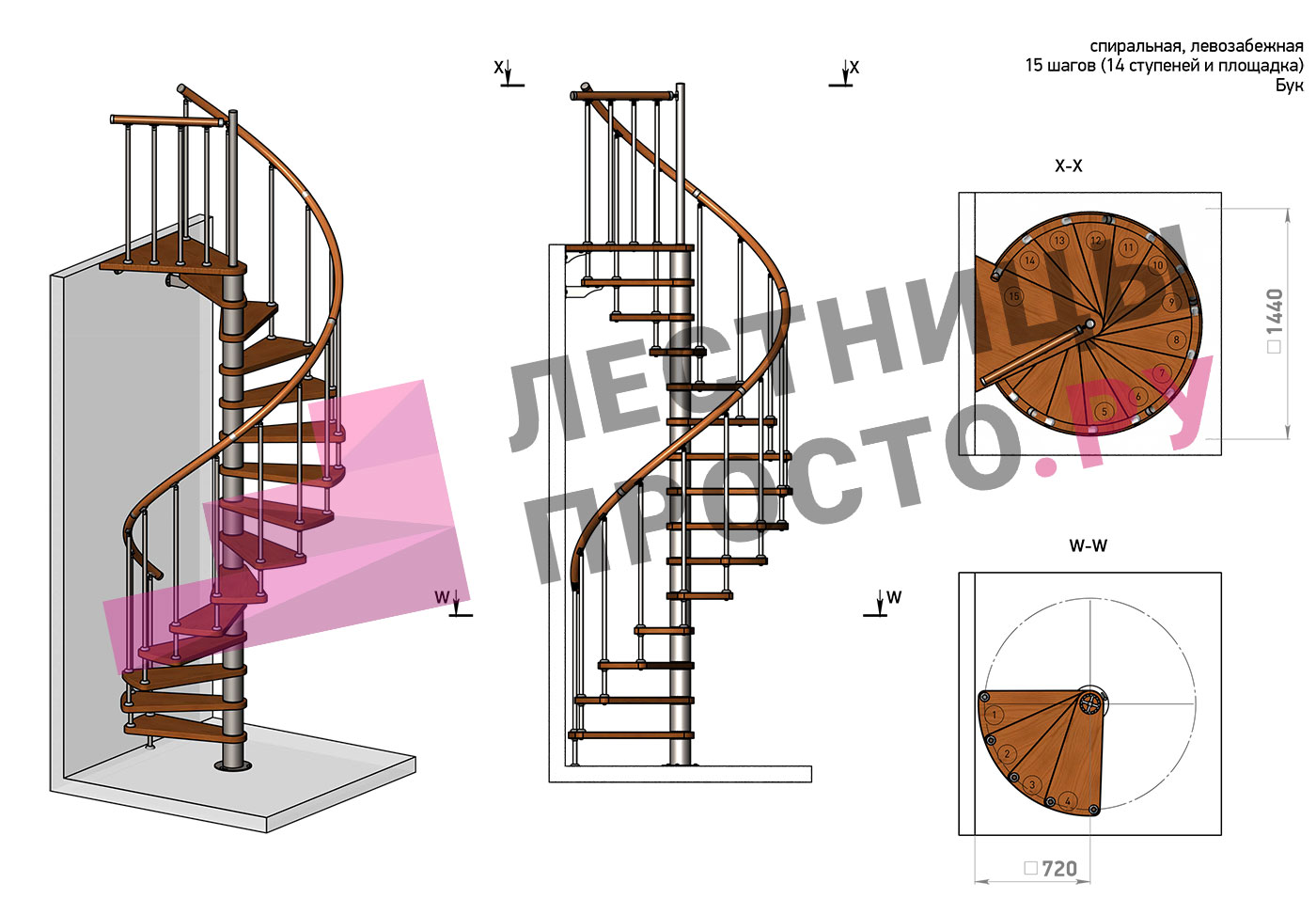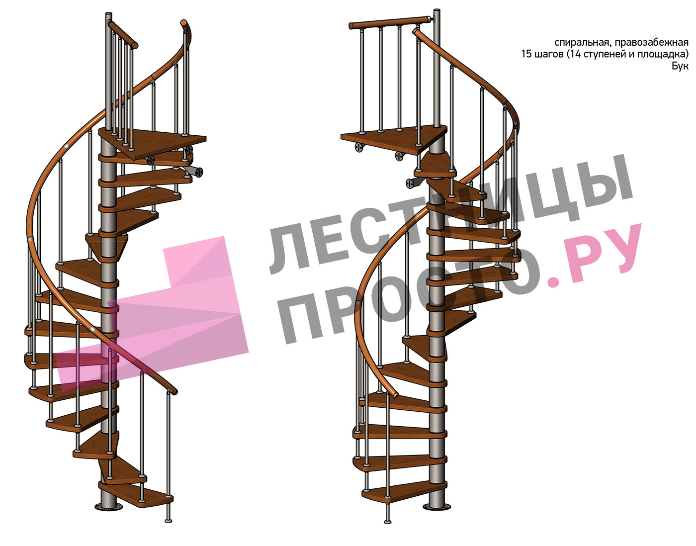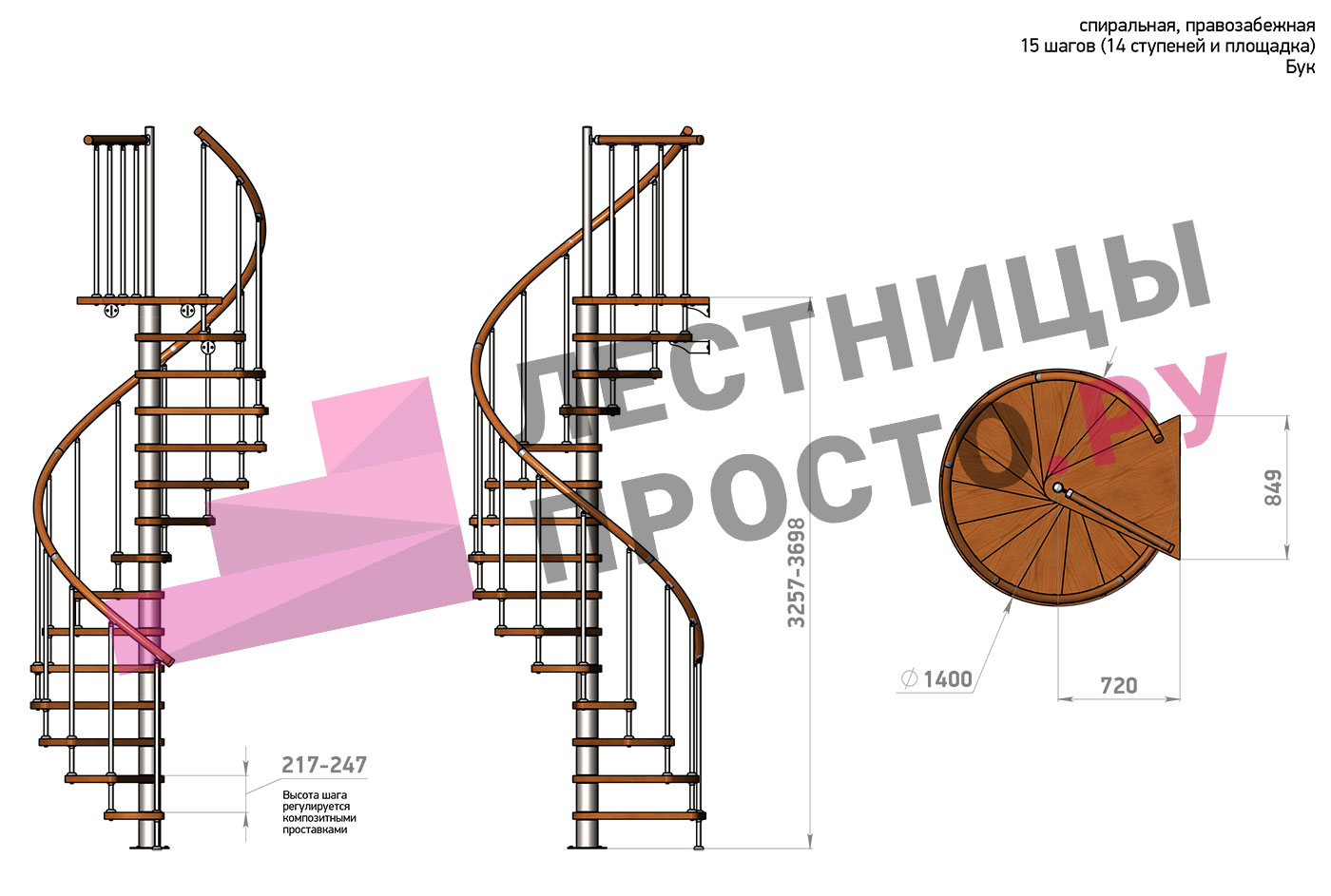 Винтовая лестница Prosto Spiral White D140см, h325.7-369.8 см, бук