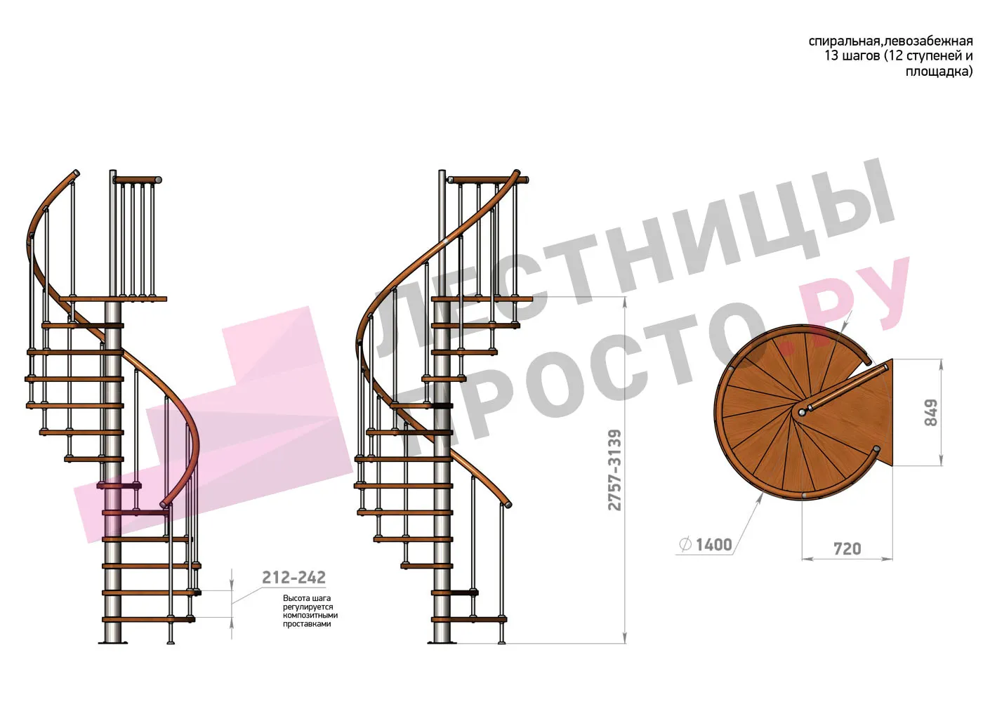 | Винтовая лестница Prosto Spiral White D140см, h296.9-338.1 см |