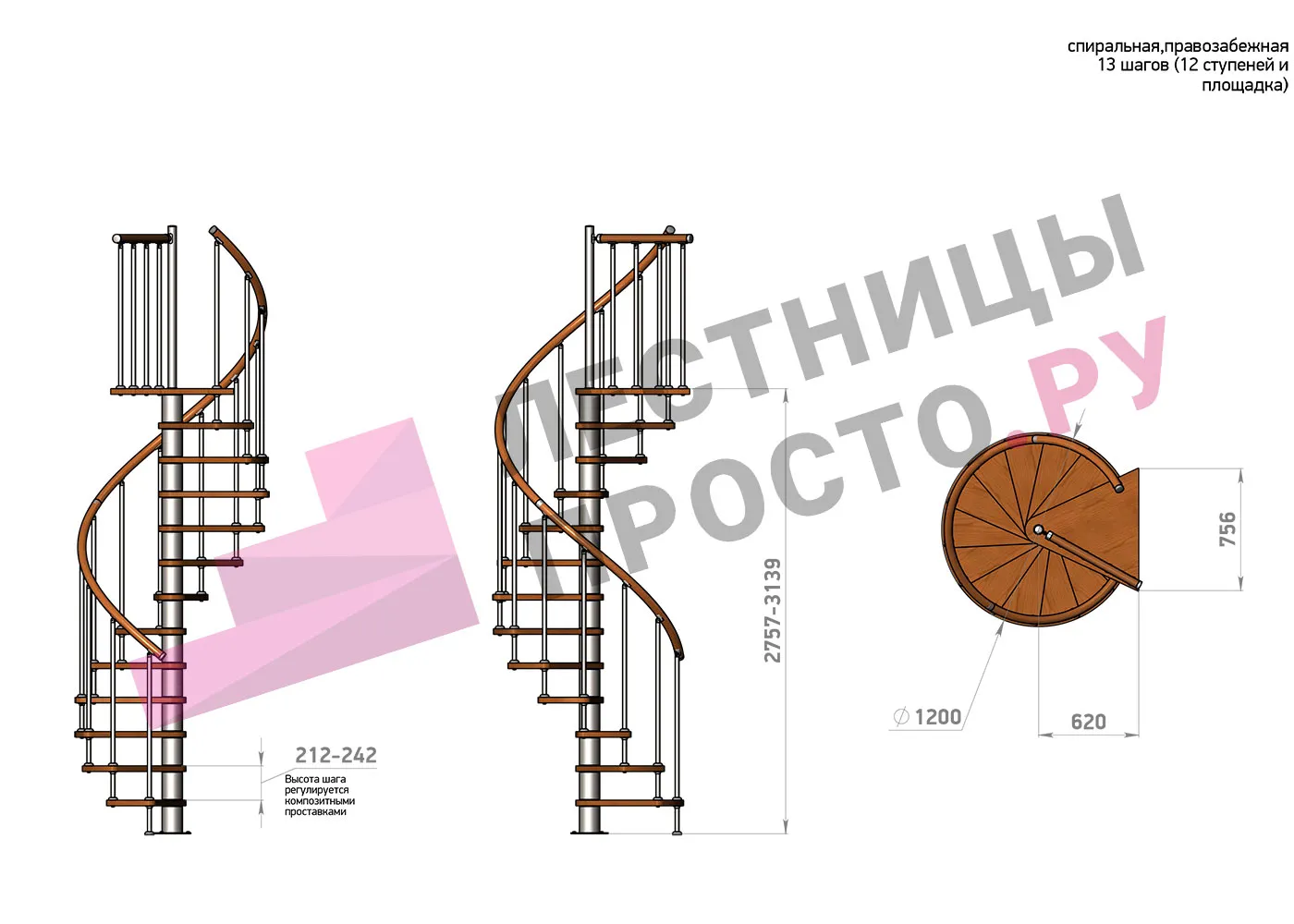 | Винтовая лестница Prosto Spiral White D120см, h275.7-313,9 см |
