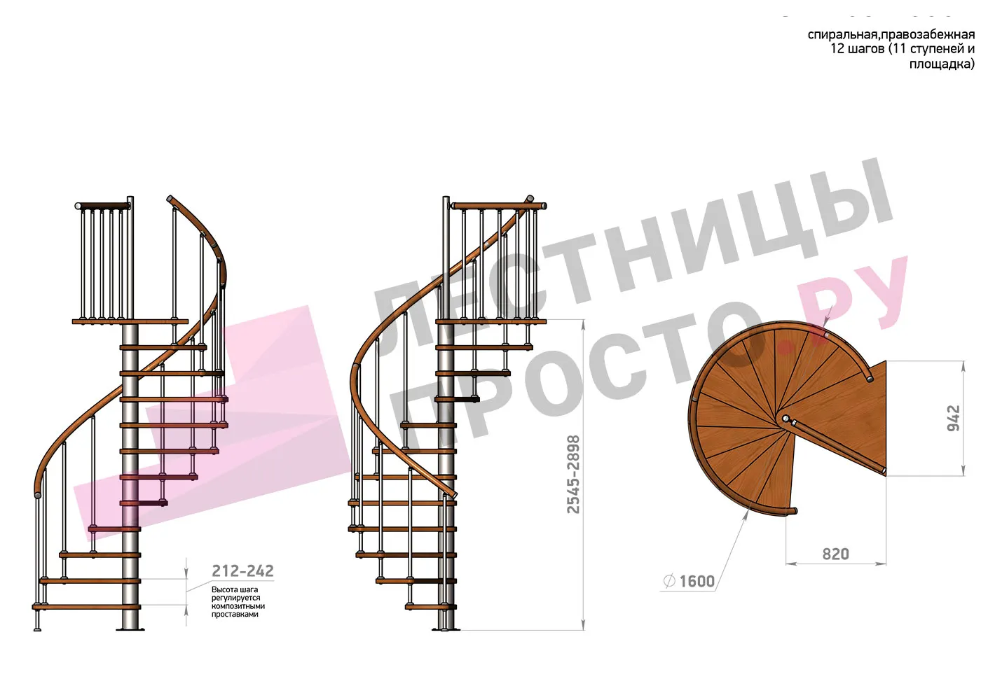 | Винтовая лестница Prosto Spiral White D160см, h254.5-289.8 см |