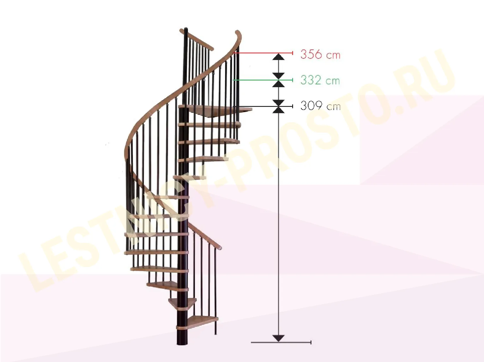 Благодаря возможности регулировать высоту шага с помощью пластиковых вставок (входят в базовый комплект), высоту лестницы можно варьировать в пределах от 2860 до 3090 мм.