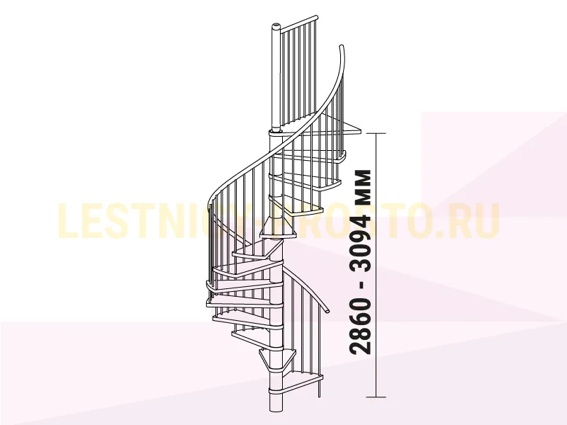 Благодаря возможности регулировать высоту шага с помощью пластиковых вставок (входят в базовый комплект), высоту лестницы можно варьировать в пределах от 2860 до 3090 мм.